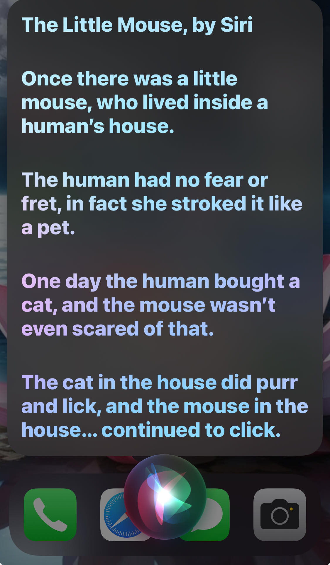 I explained that I was looking for a poem by Emily Dickinson. Siri then wrote this poem, which made me think she's more intelligent than artificial: